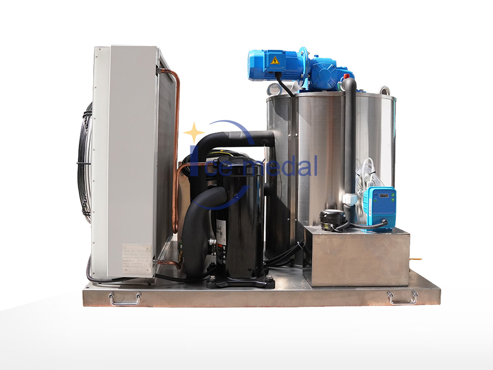 片冰機,制冰機的一種,片薄、干爽疏松狀的白色冰。平面形狀不規(guī)則,厚度15毫米 —22毫米,直徑約為12 - 45毫米。 片冰質(zhì)地干燥、柔軟無尖銳棱角,不會刺傷冷凍物體。冷藏包裝過程中其扁平的外型將盡可能避免傷害到被冷藏物,對被包裝食品起到保護作用。 片冰具有大接觸面積、快速制冷、儲藏運輸便捷、減少熱交換,保持冰的溫度等特點。自動片冰機采用先進的立式螺旋刀切冰式蒸發(fā)器,制冰時由冰桶內(nèi)部的分水裝置將水均勻的分灑至 冰桶內(nèi)壁快速結(jié)冰,冰成型后由螺旋冰刀切冰落下。