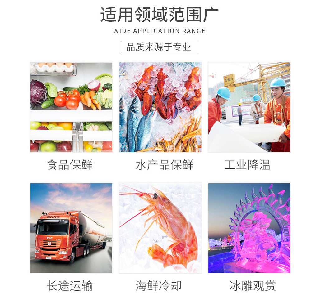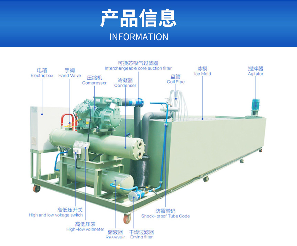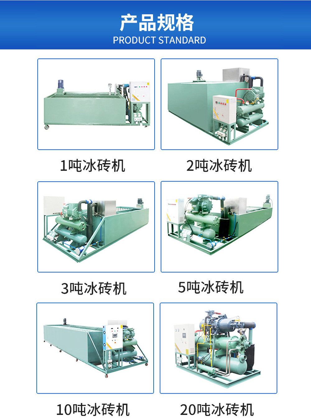塊冰機(jī)又名冰磚機(jī),是制冰機(jī)中的一種,可分為直冷式塊冰機(jī)、鹽水式塊冰機(jī)、直冷集裝箱式塊冰機(jī)、鹽水制冰集裝箱式塊冰機(jī)。所制出的冰塊是冰類產(chǎn)品中外形尺寸大,與外界的接觸面積小,不容易融化??筛鶕?jù)不同要求粉碎成各種形式的冰塊。適用于冰雕、混凝土降溫、隧道降溫制冰機(jī)、冰塊儲(chǔ)存海運(yùn)、海上捕撈等。 粉碎后可以用于所有用冰的場所。但冰經(jīng)過粉碎后,會(huì)部分融化,冰量損耗。冰塊可以分為透明冰塊、乳白色冰塊和彩色冰塊。塊冰的尺寸可根據(jù)冰桶的大小進(jìn)行定制。