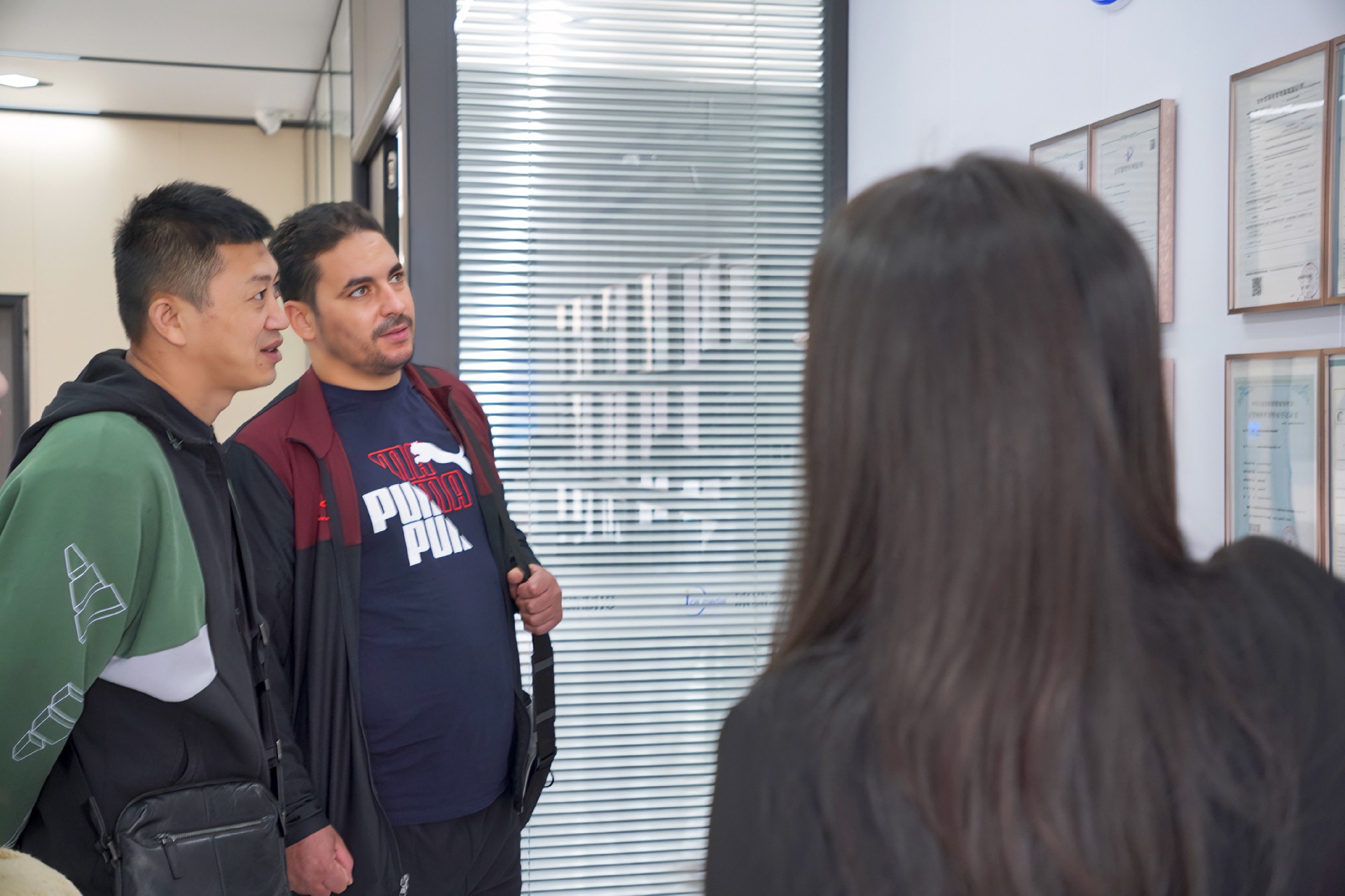 在冰勛制冷展廳,公司領(lǐng)相關(guān)負(fù)責(zé)人對阿爾及利亞客人一行進(jìn)行了熱情接待。在外貿(mào)總監(jiān)Iris的細(xì)致講解下,客戶一行對冰勛制冷的創(chuàng)業(yè)歷程、科技成果與公司產(chǎn)業(yè)鏈進(jìn)行了深入了解,并對冰勛制冷的綜合實力表示由衷的敬佩和贊賞。