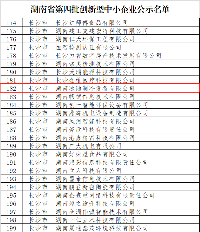 近日,湖南省工信廳公布了湖南省第四批創(chuàng)新型中小企業(yè)名單,湖南冰勛制冷設(shè)備有限公司榜上有名。